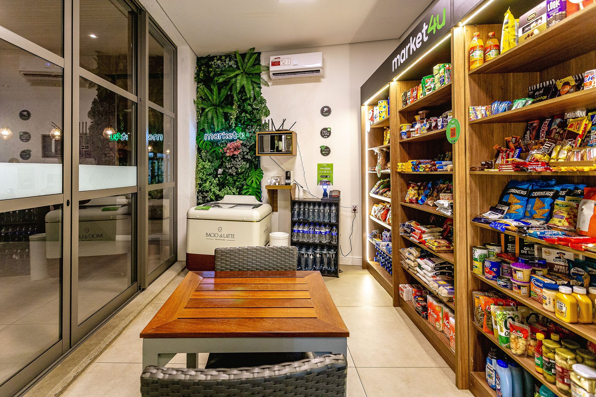 Espaço Multifuncional: O layout do estúdio é pensado para ser versátil, atendendo tanto as necessidades de quem está de passagem pela cidade quanto de quem precisa de um local para trabalhar ou relaxar.